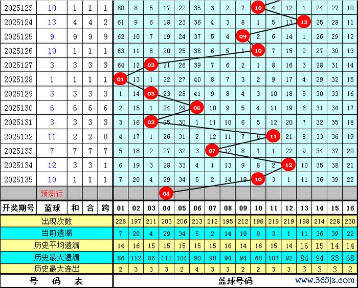 蓝球分析(界说:01-04为一区,05-08为二区,09-12为三区,13-16为四区):上期蓝球开出三区号码10,最近10期蓝球四区落号比为4:2:4:0,总体上一、三区蓝球走势最热,四区蓝球莫得出现,本期蓝球看好在第一区开出,独蓝参考04。
