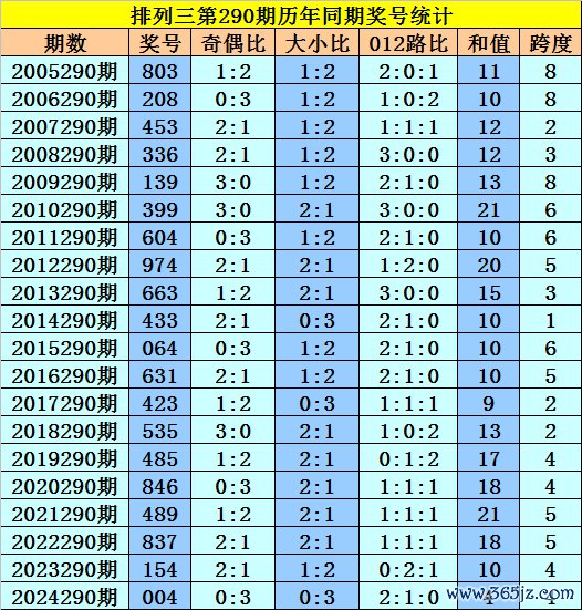 开奖总结:罗列三第2025289期开出奖号685,奖号012路比为1:0:2,大小比为3:0,奇偶比为1:2,最近三年第290期同期开出奖号为:第2022290期:837、第2023290期:154、第2024290期:004。
